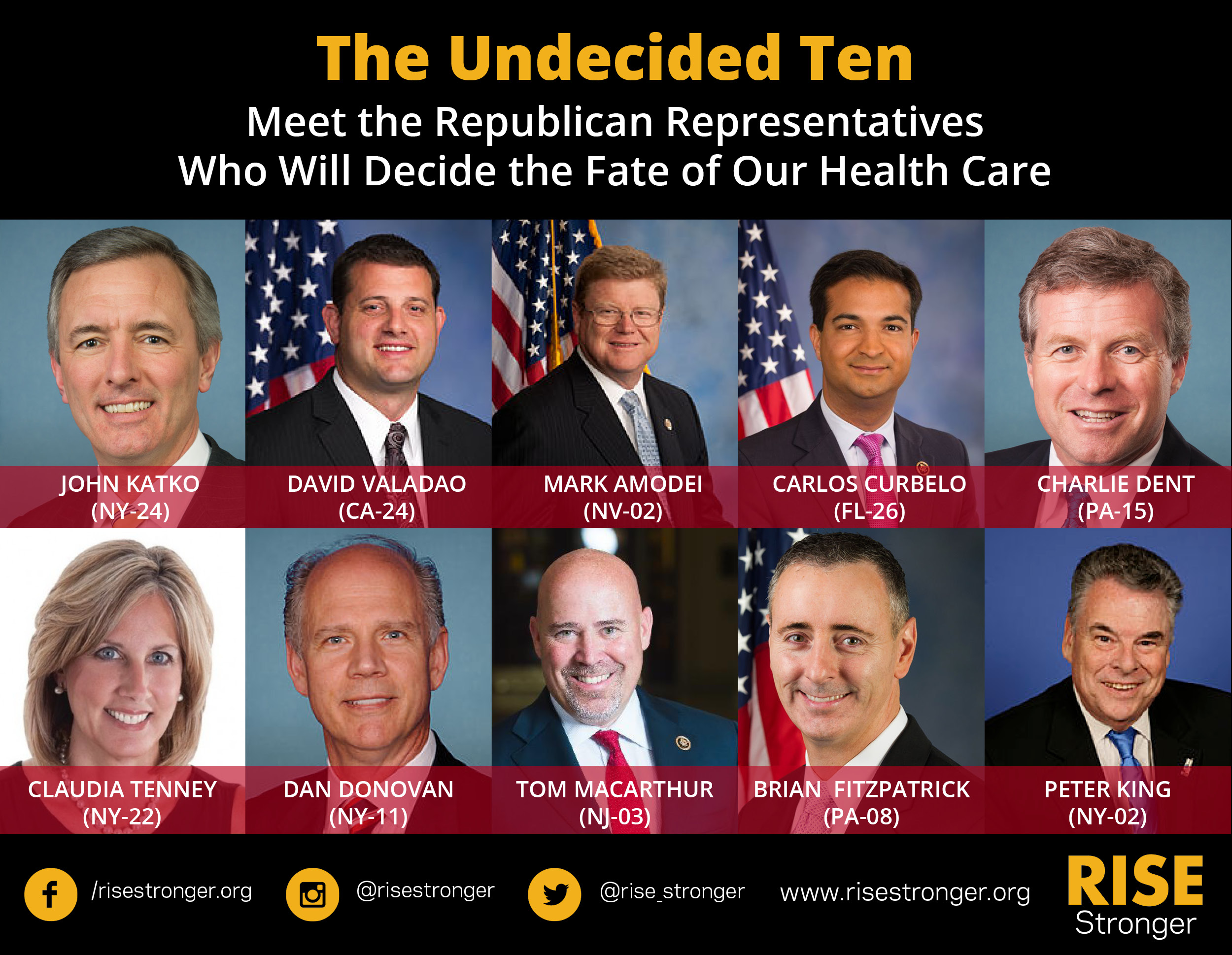 ten most vulnerable Republicans that could get us to 22 votes. Let's help them make up their minds before the next vote on Thursday, March 23 - the seventh anniversary of the original ACA signing. Click here for more information about saving our health care.